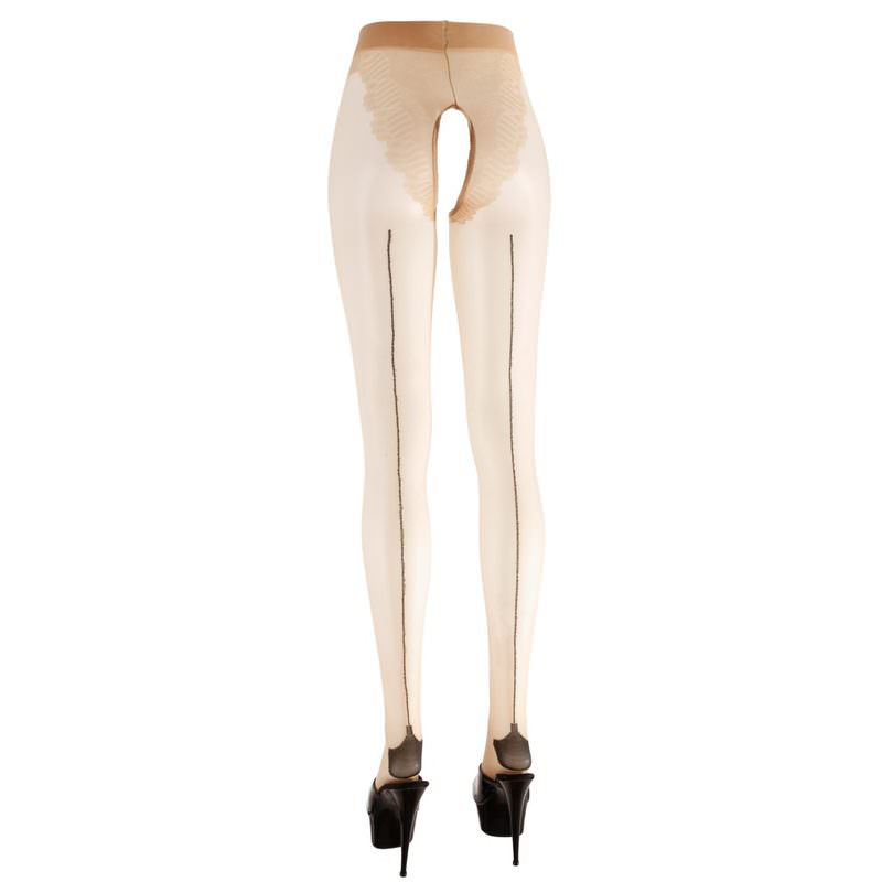 Schlichte Straps-Strumpfhose mit hübschem Höschenteil und einladend offenem Schritt. Dazu sorgen die Ziernaht und die Hochferse hinten für endlos lange Beine. 20 den.